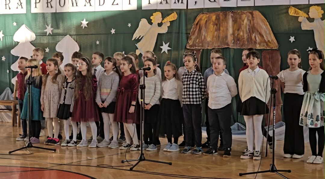 Tuż przed świąteczną przerwą w naszej szkole odbył się - Przegląd Kolęd i Pastorałek klas 1–4 - Każda klasa zaprezentowała wybraną kolędę lub pastorałkę, tworząc ciepłą, świąteczną atmosferę. Uczniowie śpiewali z zaangażowaniem i radością, a wspólne kolędowanie stało się pięknym wprowadzeniem w czas Bożego Narodzenia.